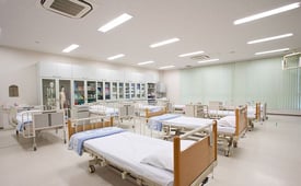 福祉科の生徒は、介護福祉士養成校として厚生労働省認可を受けている大川学園医療福祉専門学校の学生が学ぶ施設設備を使用し福祉に関する知識、技術を学びます。